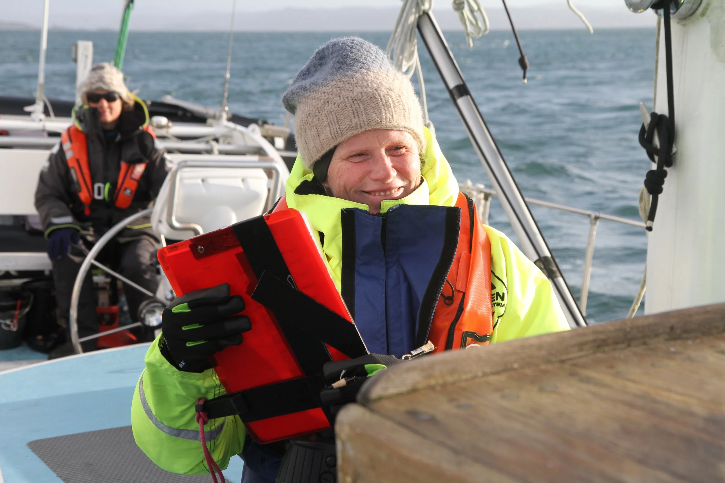 We continued south completing new transect lines that have not been covered this season, spotting harbour porpoise and an unidentified seal. Some of the volunteers got a chance of proper sailing, managing to put up to gib and down again (due to the changing squall). At 13.30 we turned around and returned north continuing our super straight transect lines at greater than 30-degree angle turns, creating lovely zigzags on the map. It was a day of many weather conditions (sun, rain, sun, drizzle, and sun again) but we have now arrived in ‘fake’ Tobermory (Craobh Haven Harbour) where our plan is to assess the local environment through Pub sampling.